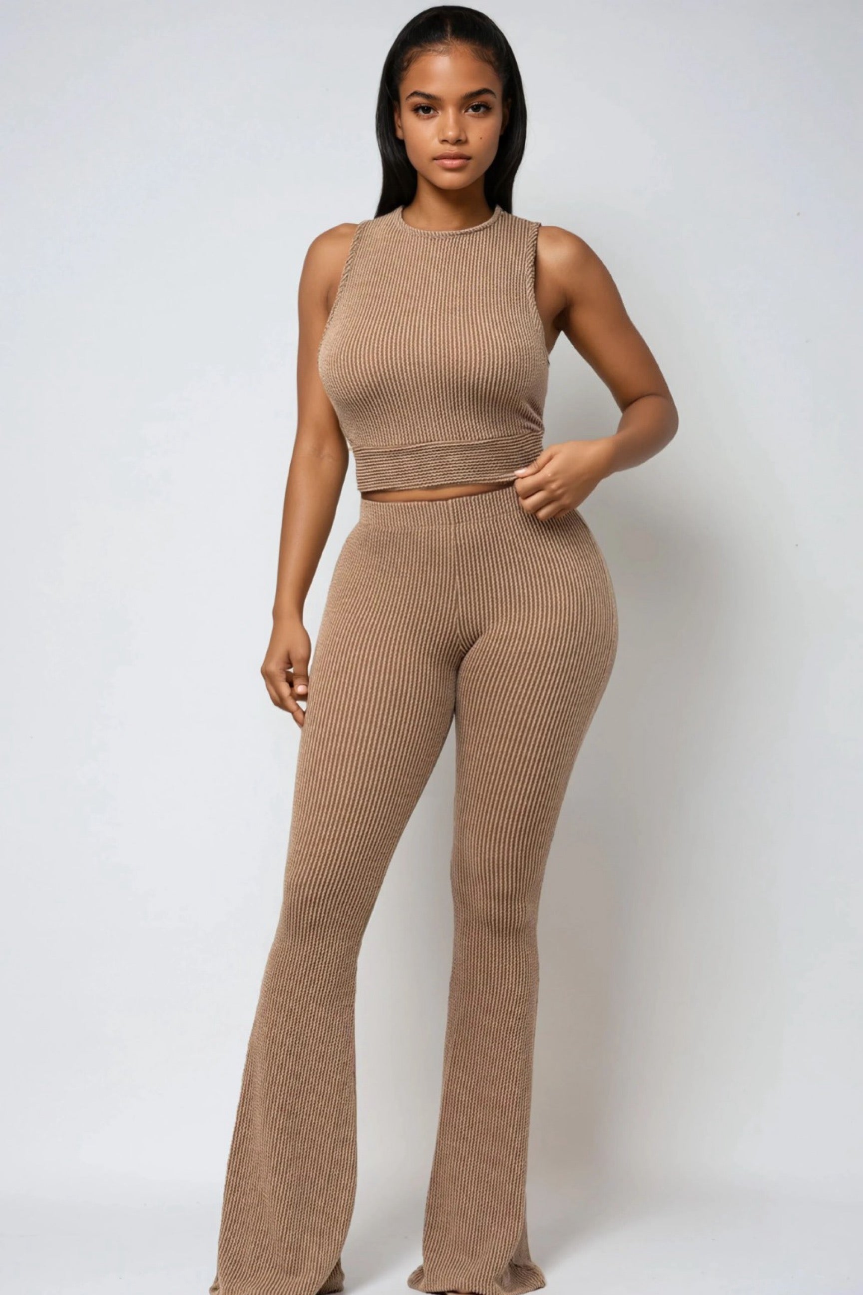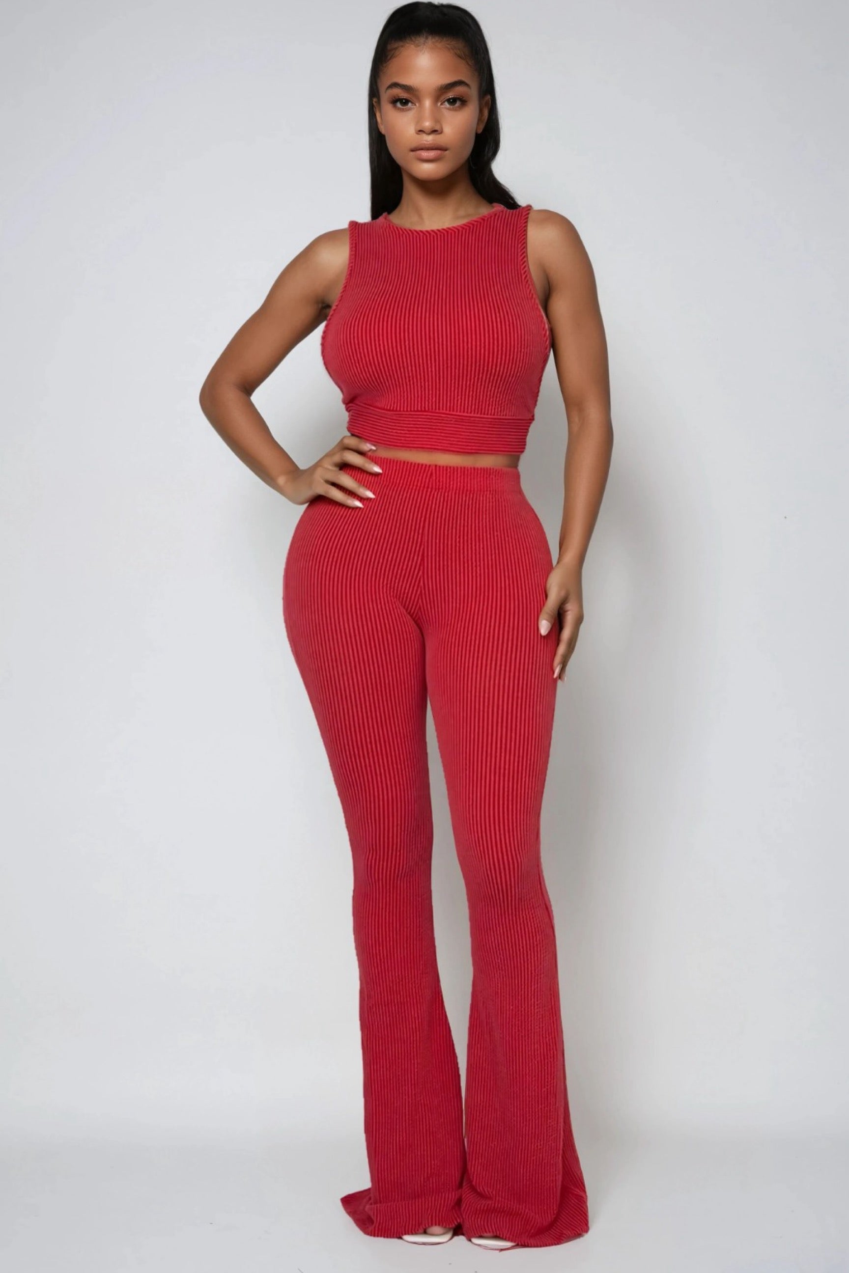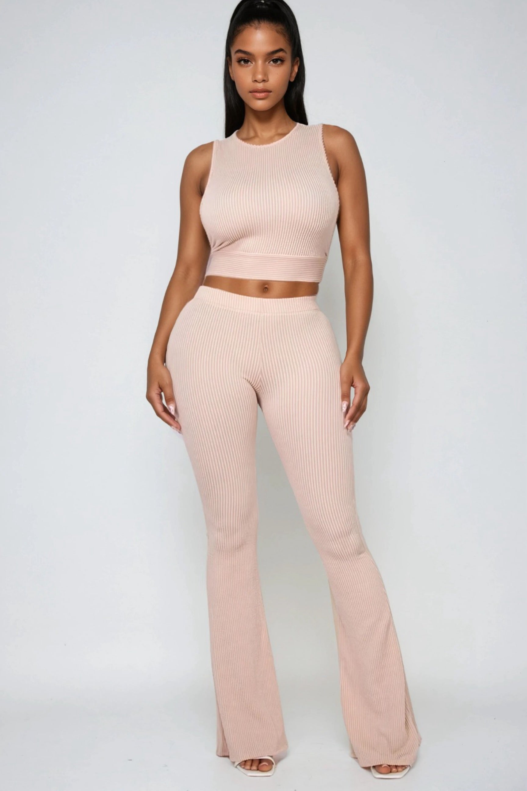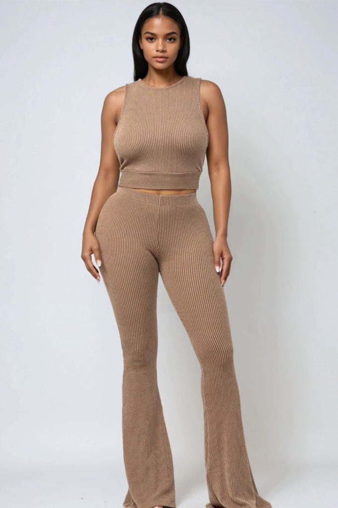 Blijf stijlvol én comfortabel in de Be Positive Top and Pants Two-Piece Set. Dit geribbelde ontwerp bestaat uit een mouwloze crop top en een bijpassende high waist broek met flatterende uitlopende pijpen. Een veelzijdige set die moeiteloos te combineren is van loungen tot casual uitjes, en die je tegelijkertijd chic en zelfverzekerd houdt.