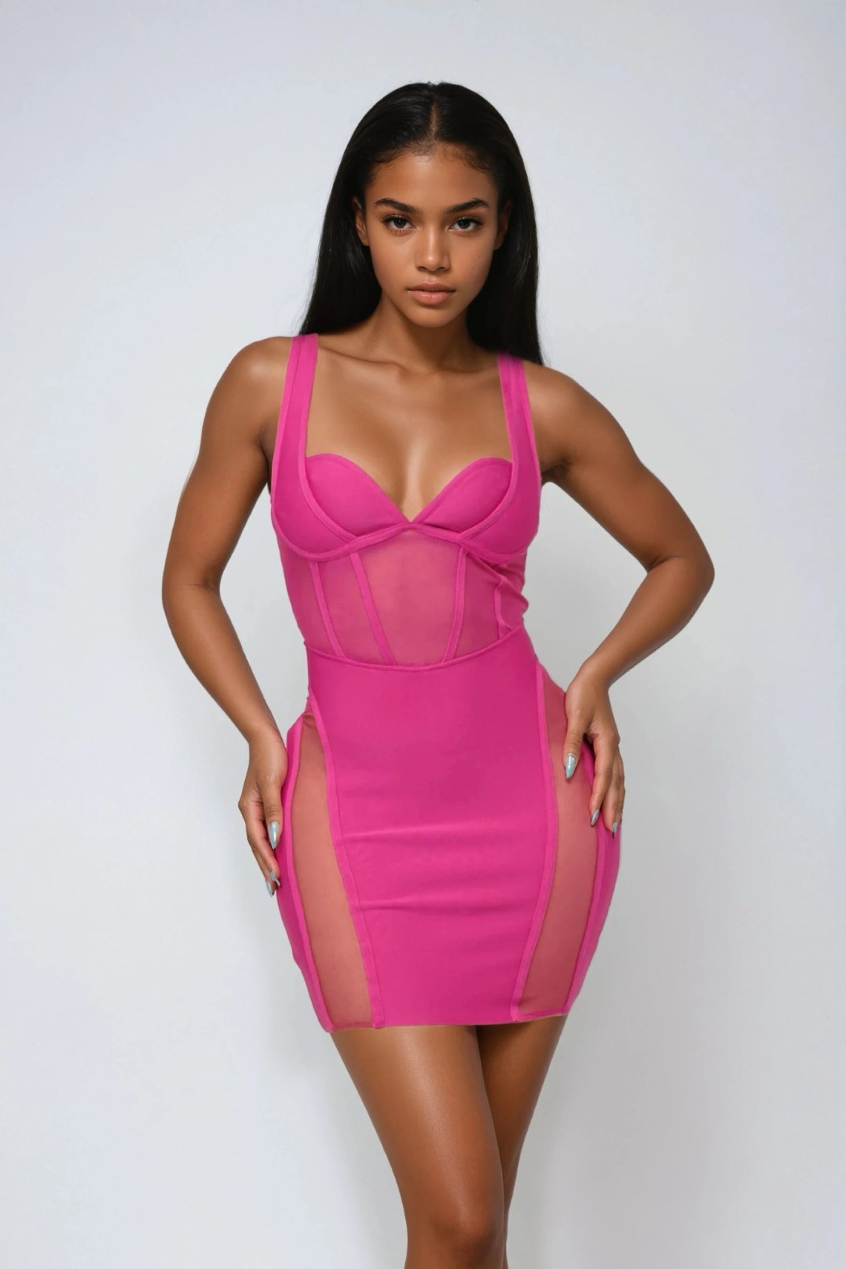 Turn heads effortlessly in the Don’t Doubt It Mesh Bandage Dress, a bold and sculpting mini dress designed to accentuate your curves. Crafted from premium bandage fabric with sheer mesh paneling, this dress creates a striking silhouette while maintaining comfort and stretch. The structured bustier top adds support and definition, while the figure-hugging fit highlights your shape from every angle. Perfect for nights out, special events, or anytime you want to make a confident statement.