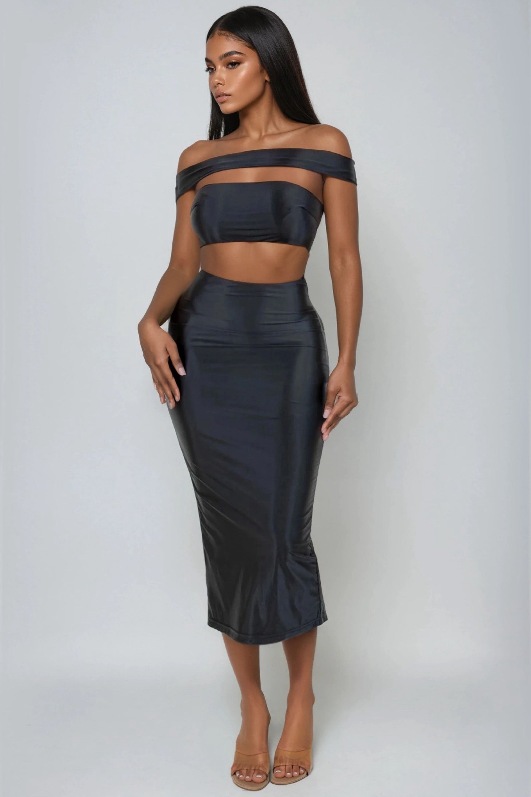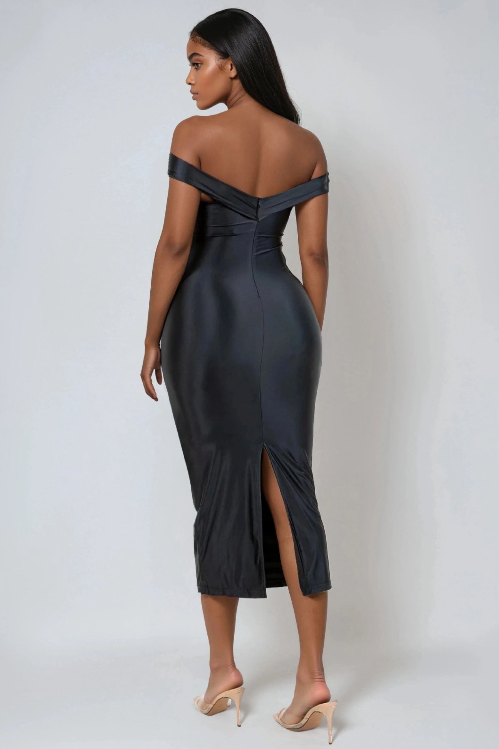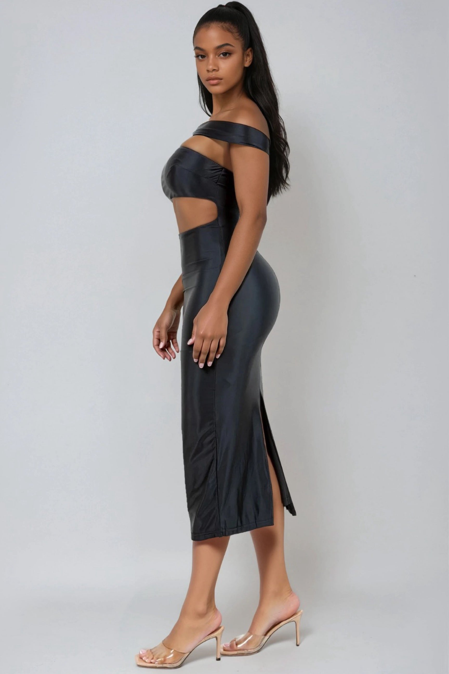 Trek de aandacht met de Expensive Taste Cut-Out Off-Shoulder Midi Dress. Een strak, vrouwelijk ontwerp, ontworpen om je silhouet met moeiteloze elegantie te accentueren. Deze jurk met een gladde, hoogglanzende satijnen afwerking combineert een nauwsluitend lijfje met een opvallende off-shoulder halslijn en een opvallende cut-out aan de voorkant. De nauwsluitende midi-rok valt prachtig en heeft een subtiele split aan de achterkant voor extra bewegingsvrijheid. Perfect voor een avondje uit, chique evenementen of elk moment dat vraagt om een vleugje luxe.